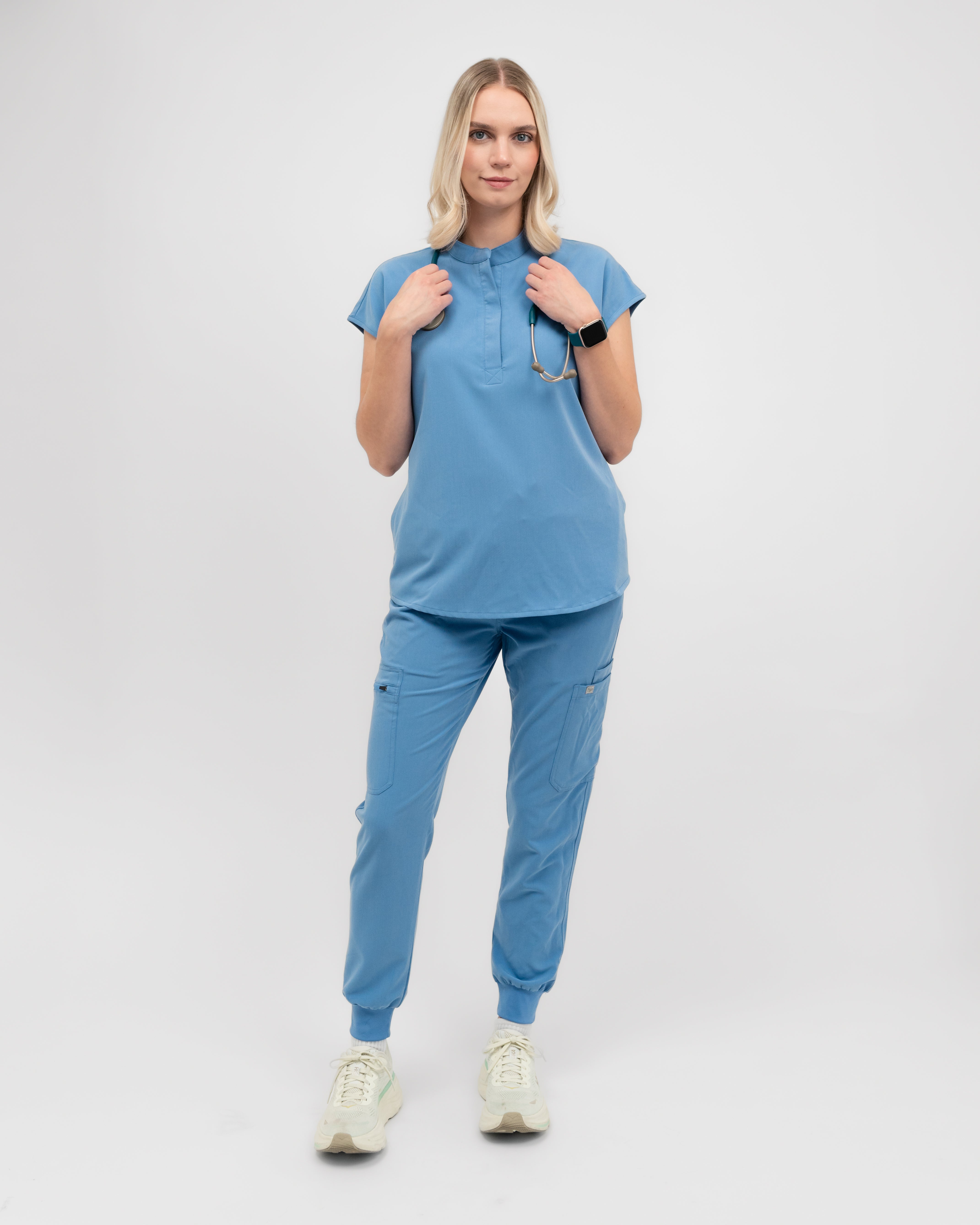Our women’s fashion-forward scrubs are designed to deliver premium comfort, flattering fit, and modern style—so you never have to choose between looking good and feeling great. This sleek tailored silhouette, these scrubs move with you through every shift while maintaining a polished, professional look. Perfect for healthcare professionals, these stylish, comfortable scrubs redefine medical wear with luxury, performance, and confidence.